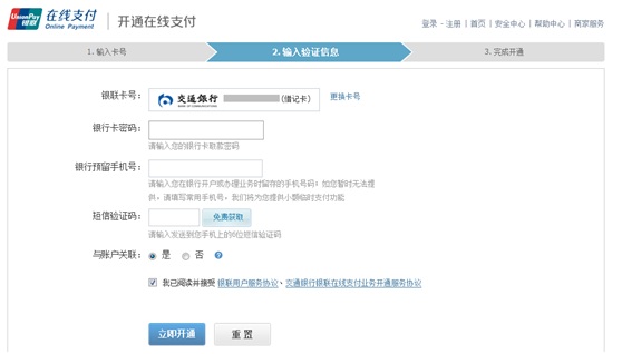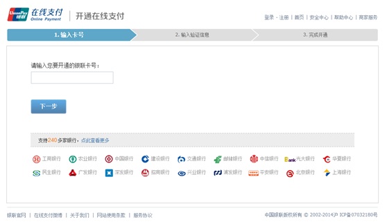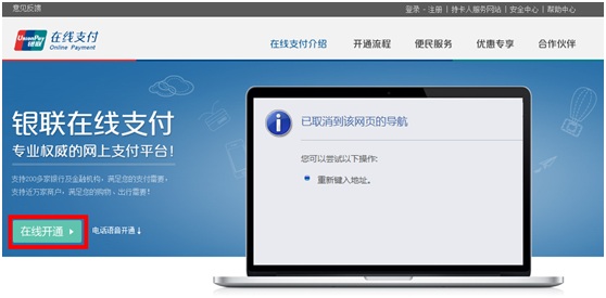 1. 登錄銀聯(lián)在線支付網站(https://static.95516.com/static/open/index.html),點擊“在線開通”