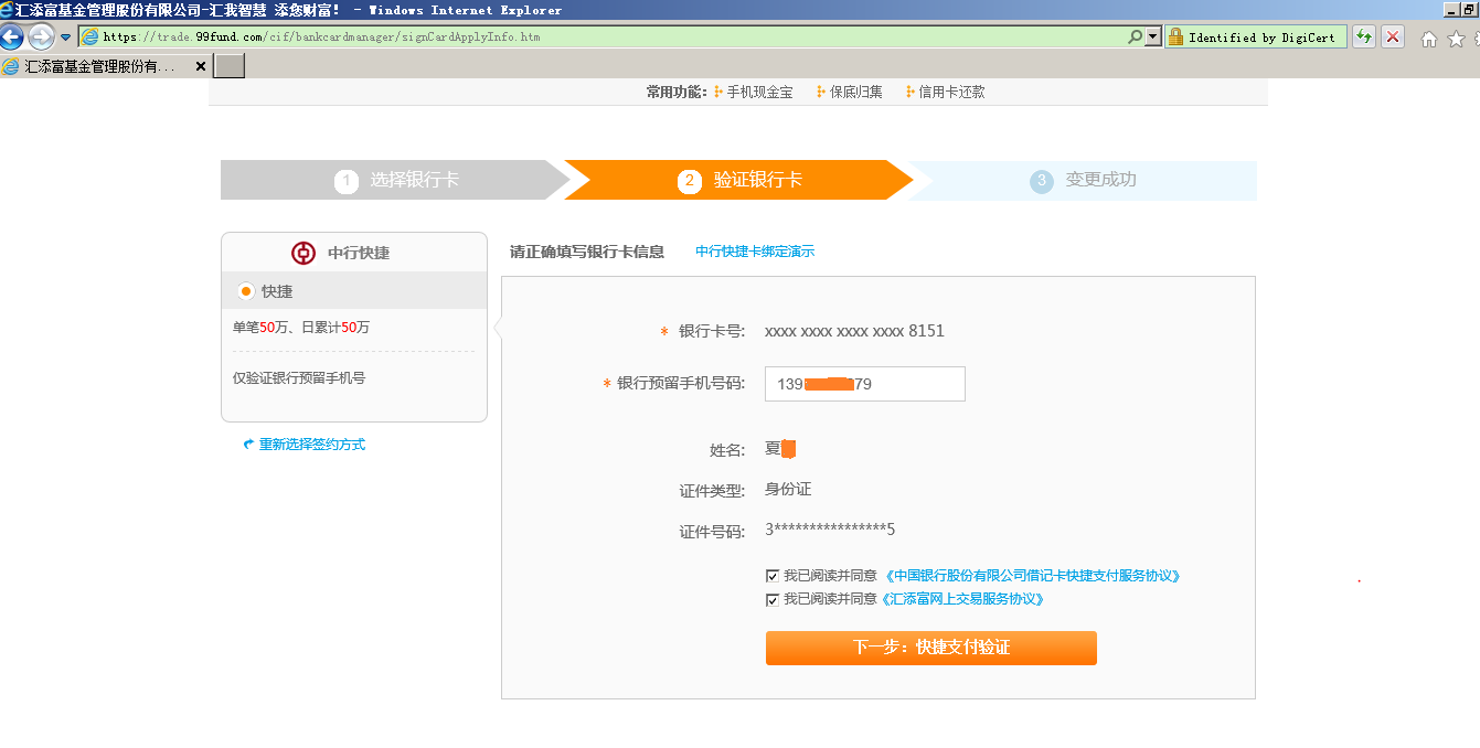 第三步 驗(yàn)證銀行卡信息